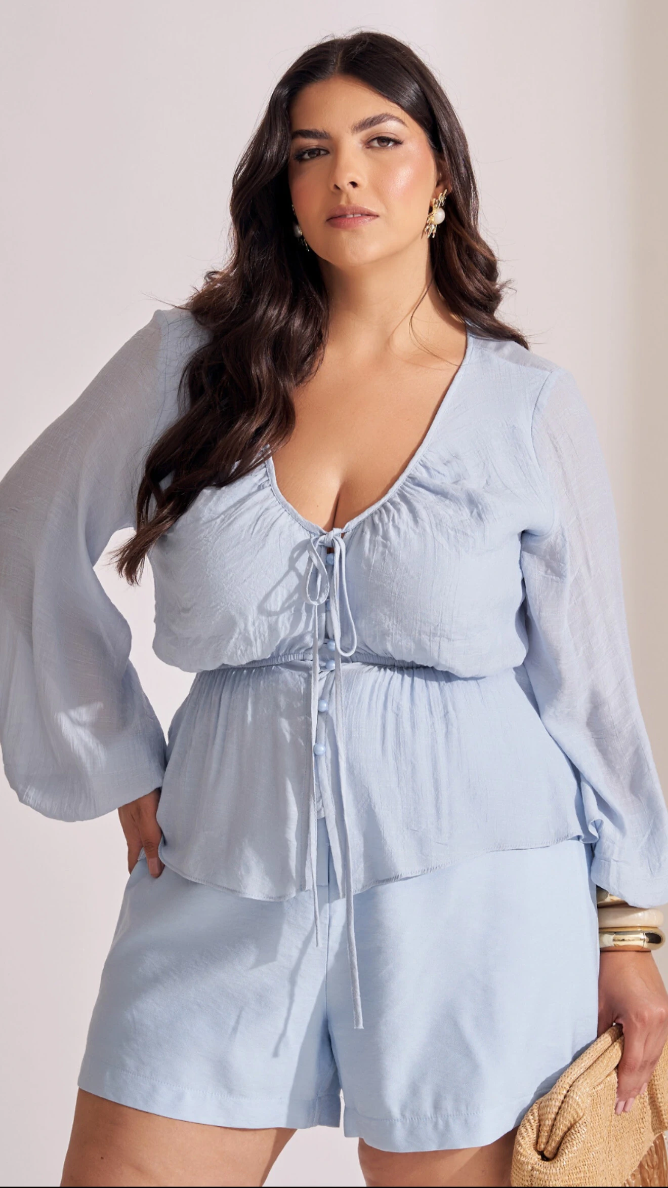 shorts viscose com botao tingido collab kayla