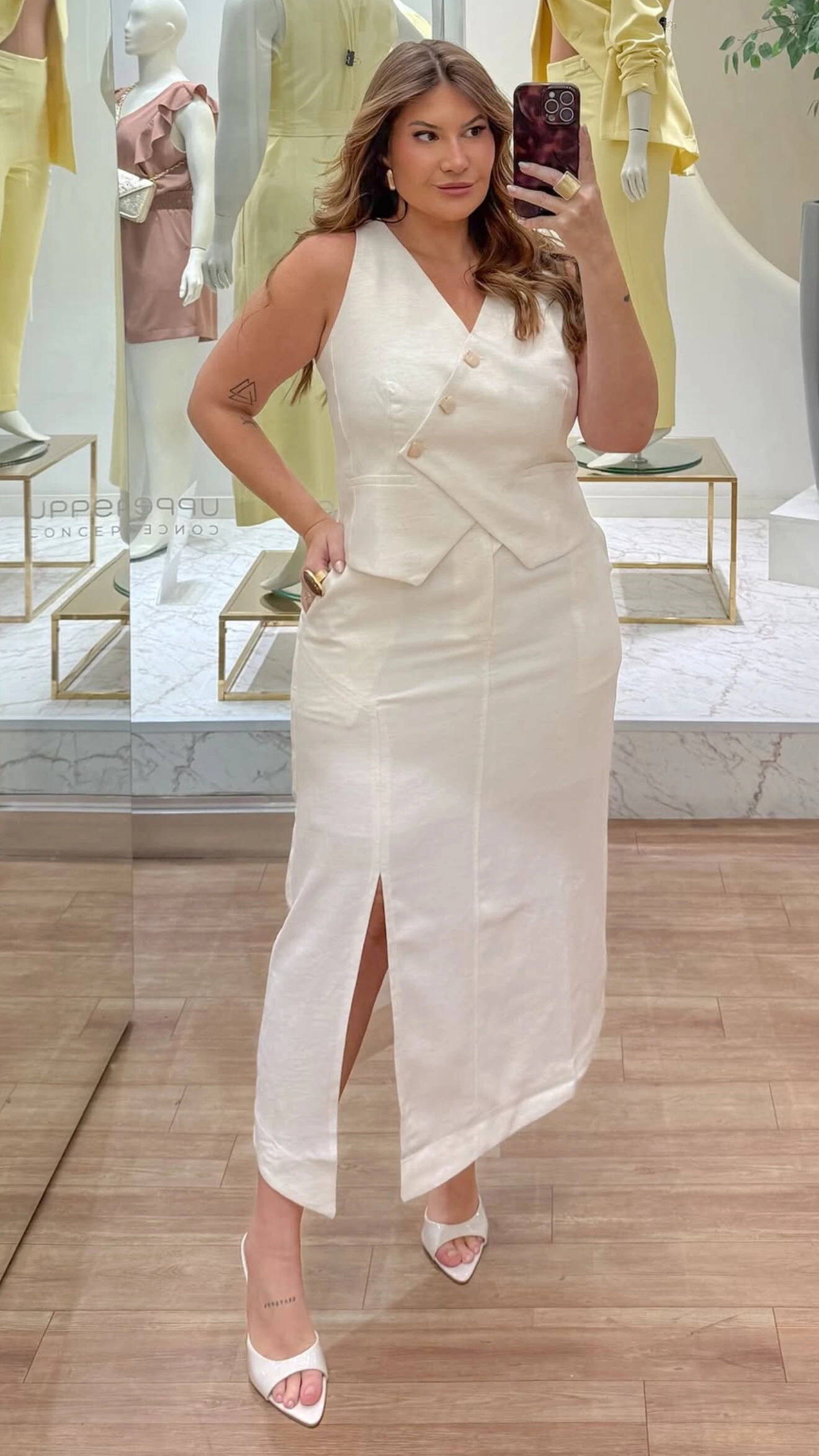 Saia midi fenda alfa sensoriale linho upper