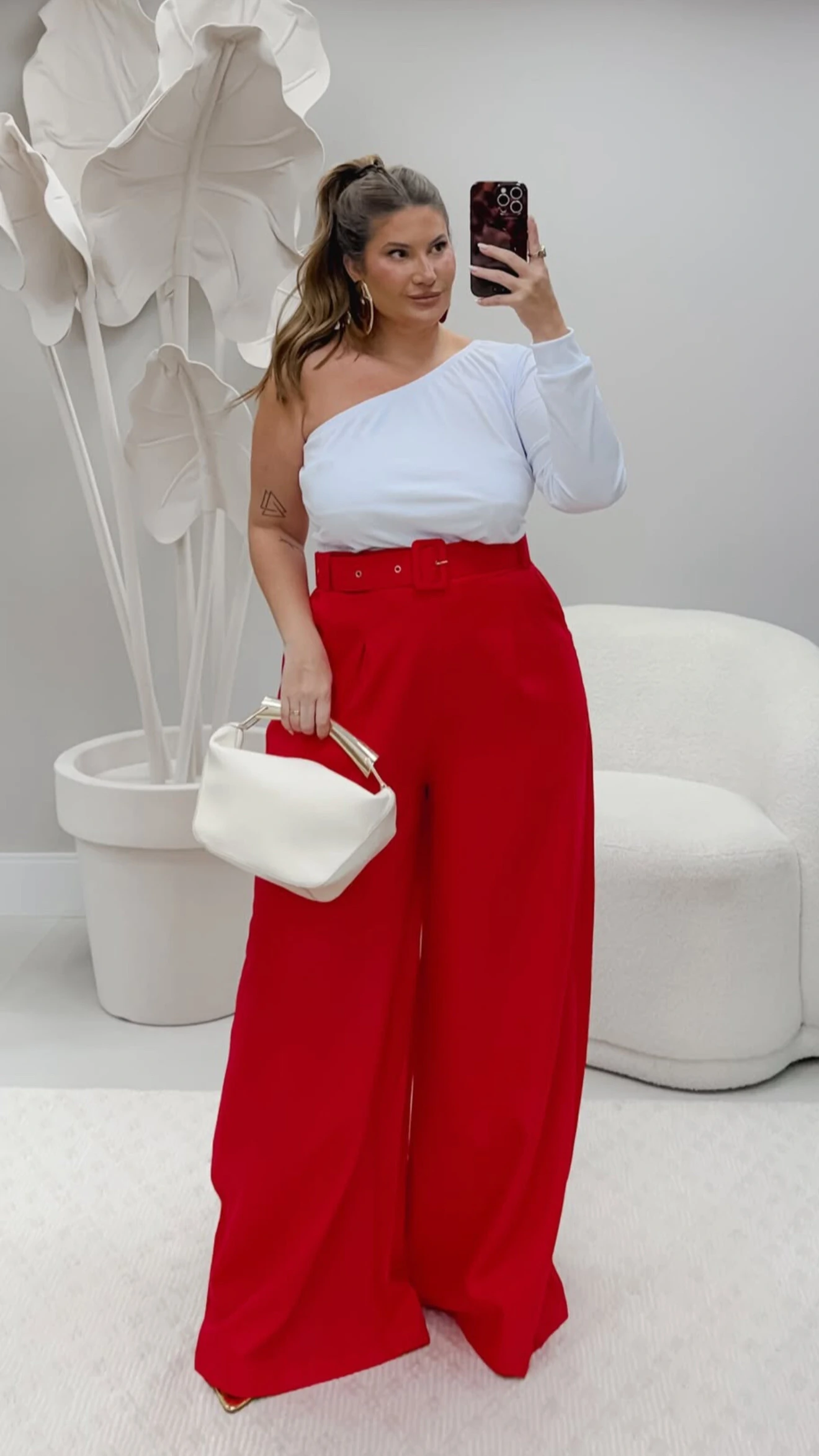 blusa um ombro fivela dourada quebela