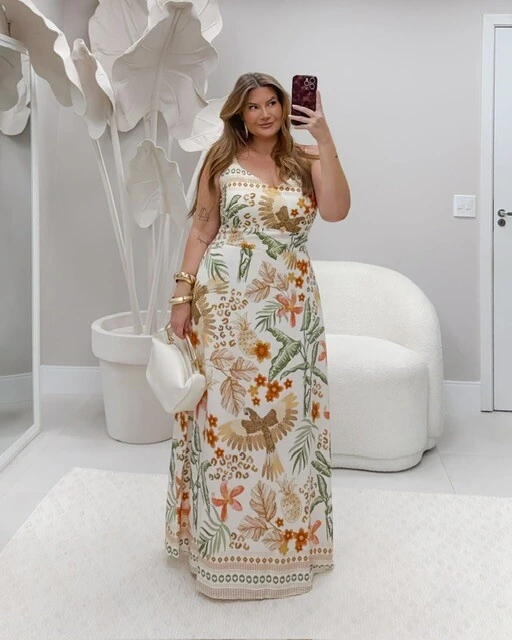 pre venda vestido longo decote v crepe rosamili