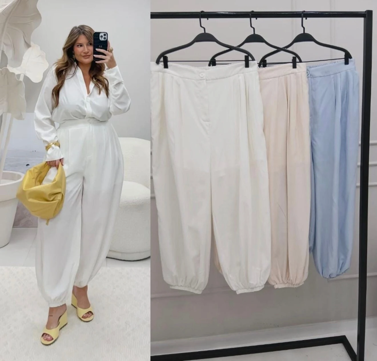 calca barrel amarelo manteiga izzat