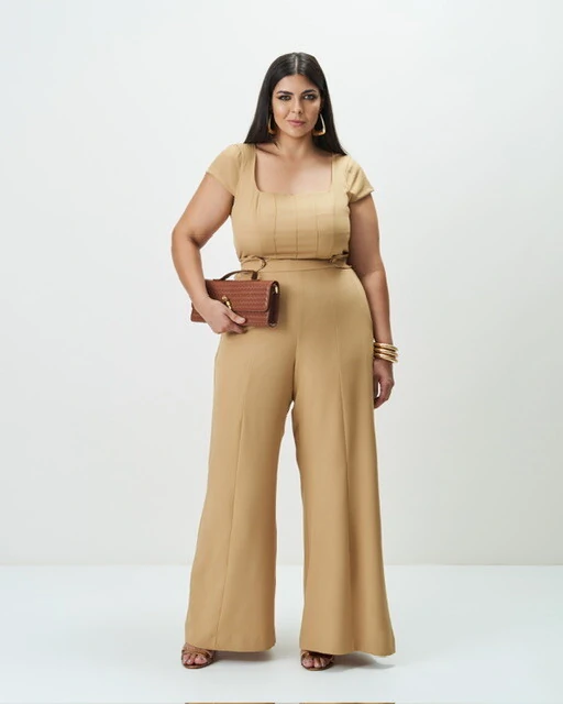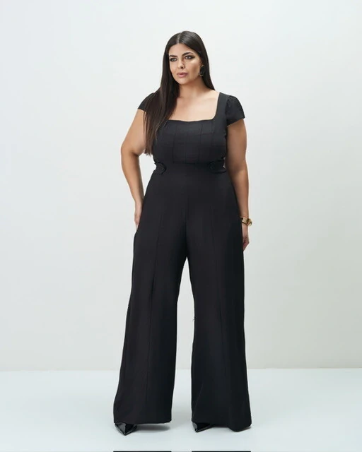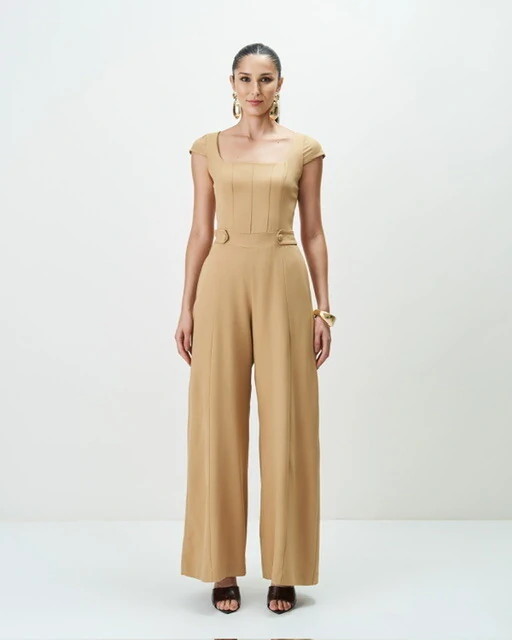 macacao decote quadrado com recortes em alfaiataria e forro quebela