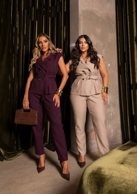 pre venda conjunto colete trench coat + calça divas
