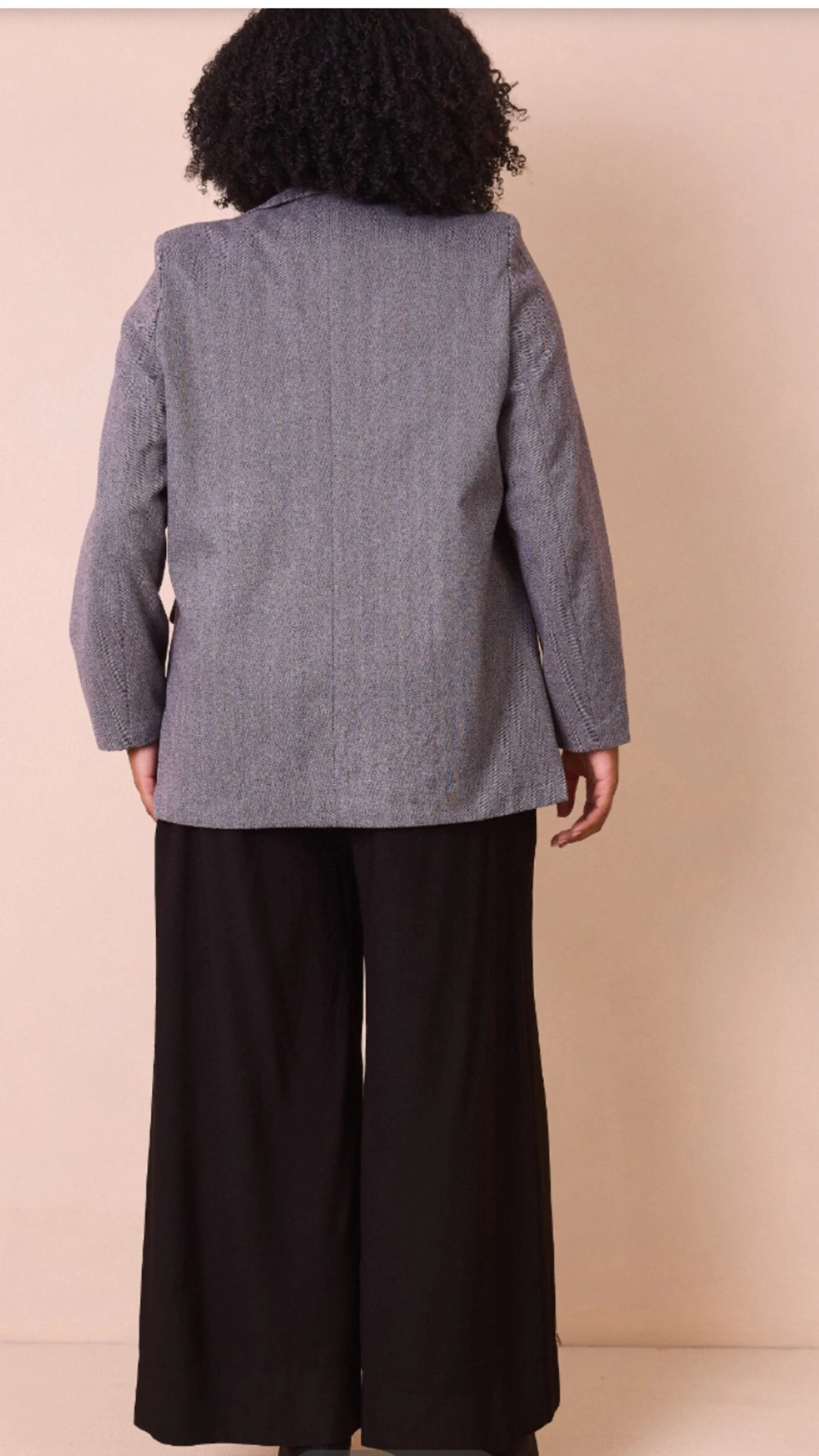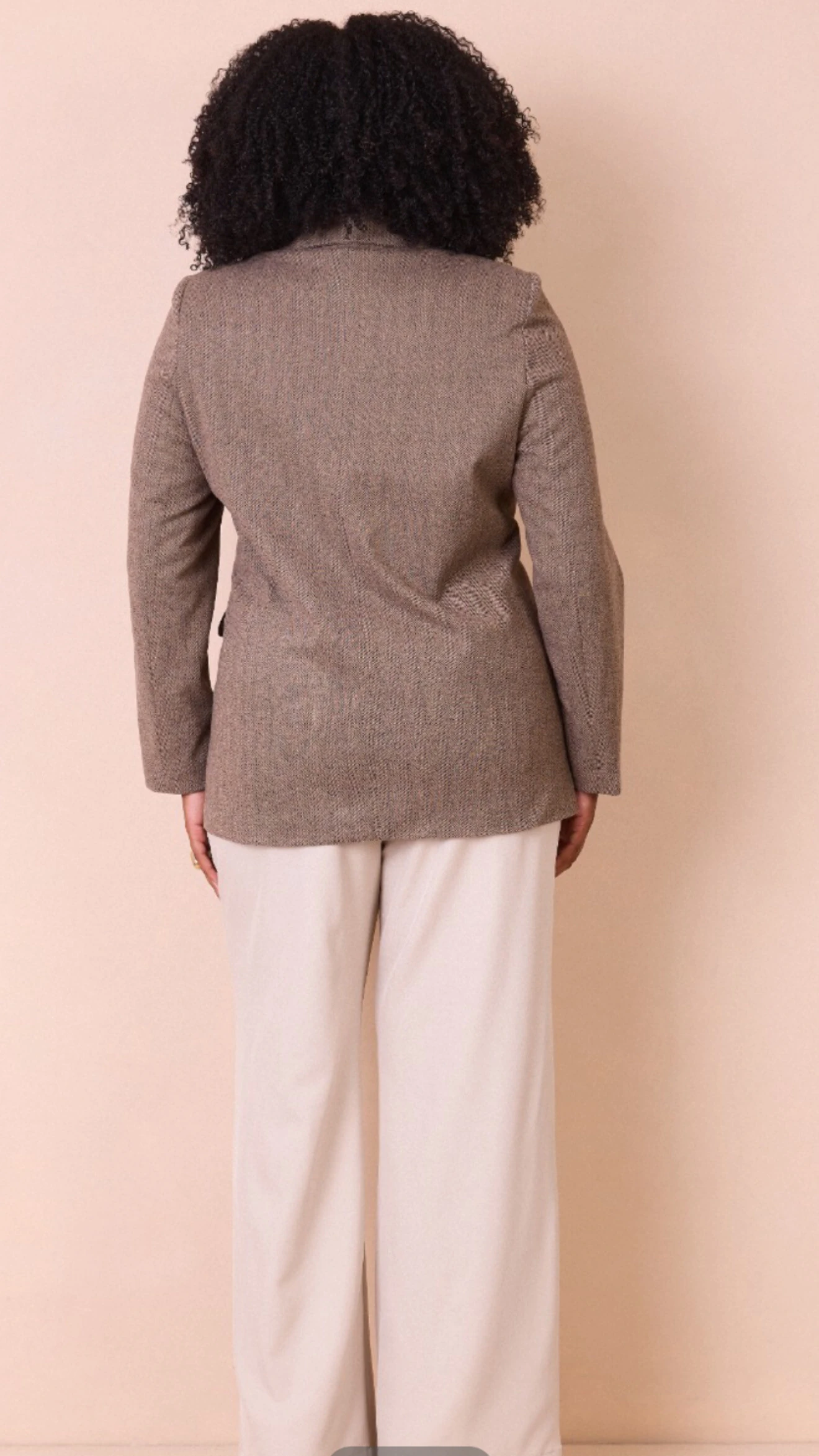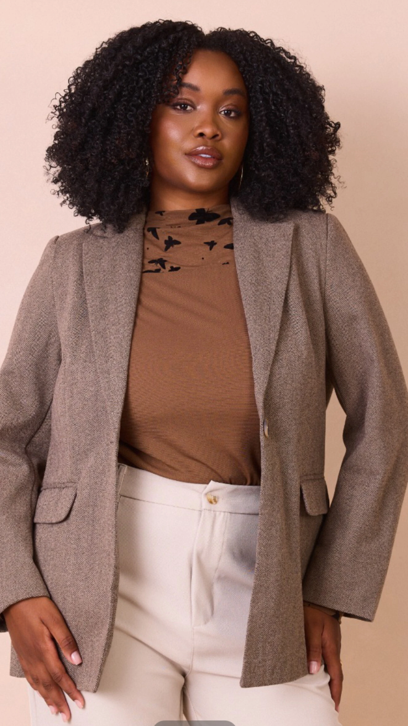 blazer em alfaiataria principe de gales forrado , um botao , bolsos e lapela