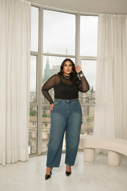 pre venda calca jeans wide denim season divas